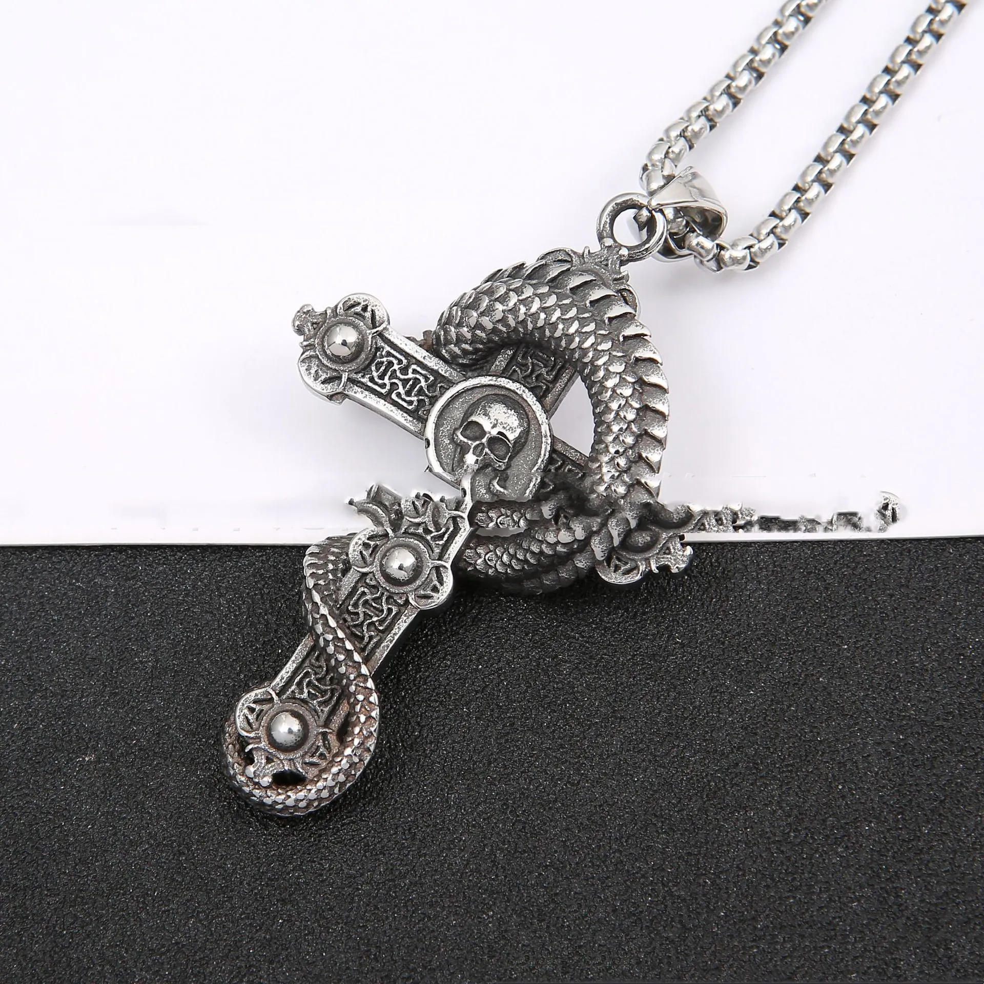 European And American Stainless Steel Necklace Cross Dragon Pendant