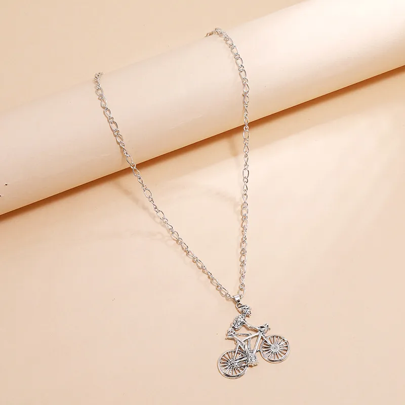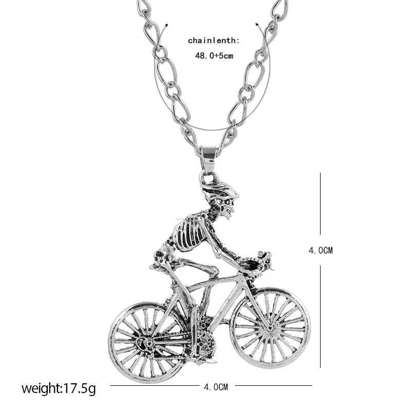 European And American Street Hip-Hop Simple Retro Personality Exaggerated Clavicle Chain Fashion Trend Skull Man Riding Bicycle Necklace