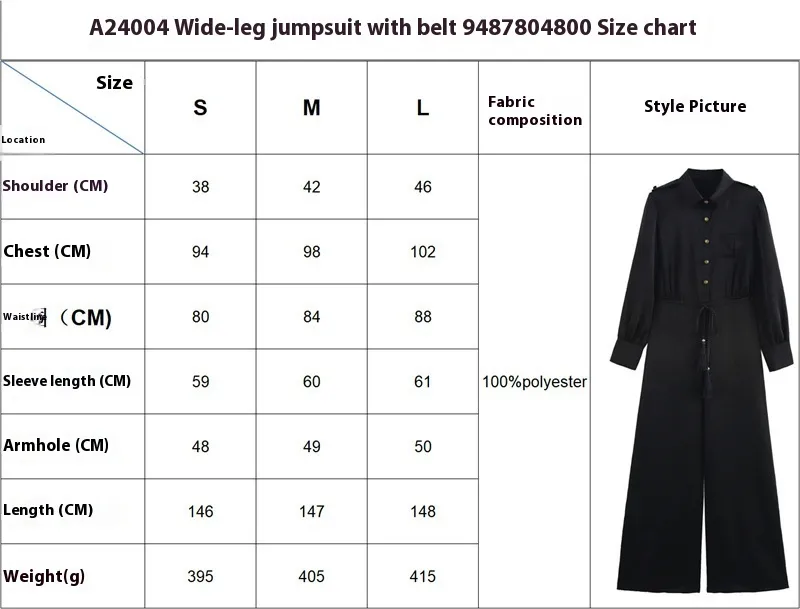 Made with high-quality materials, the jumpsuit provides both style and practicality. The wide-leg design offers freedom of movement, while the belt adds a touch of structure and elegance. The classic European and American design ensures that this piece remains fashionable and timeless, allowing you to effortlessly style it for various occasions. Pair it with heels or flats to complete your look, making it suitable for both casual and formal events.