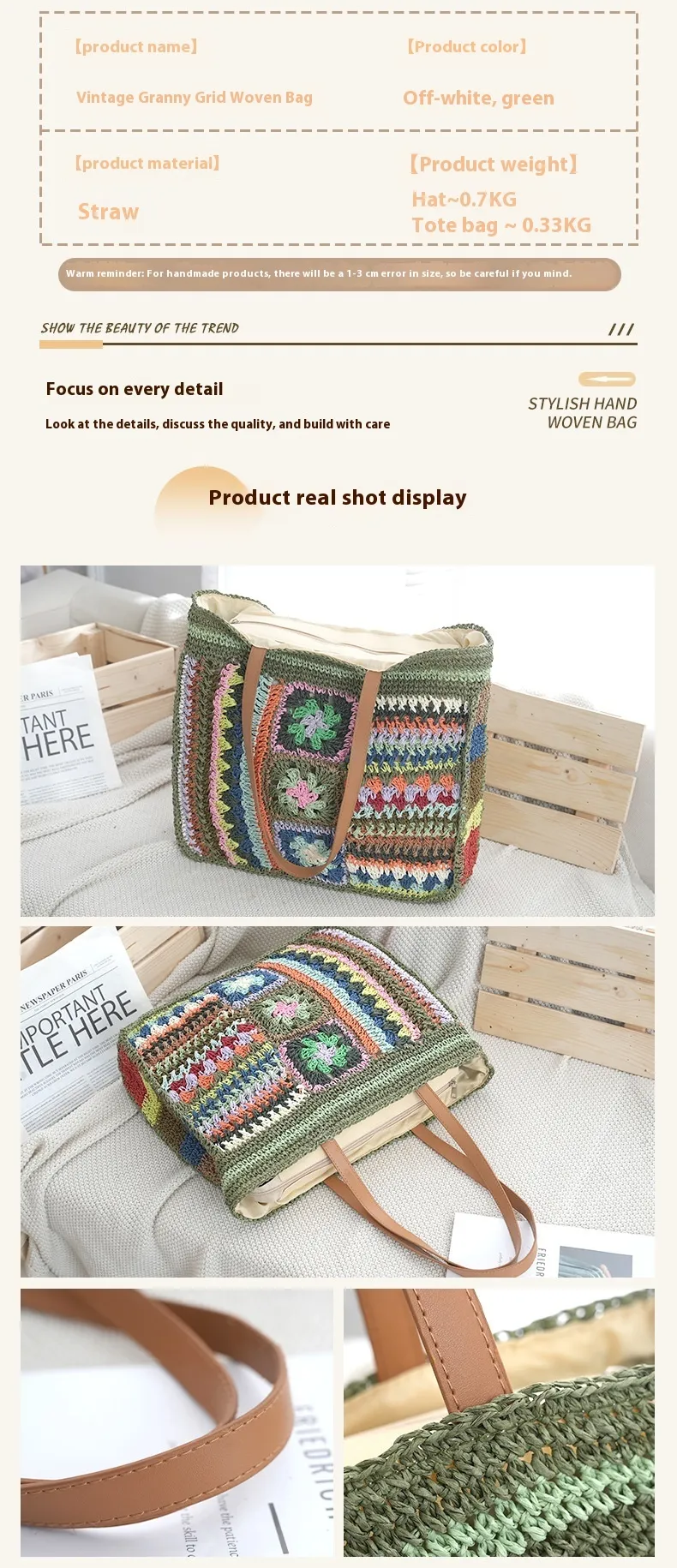 The neutral tones and classic design make this bag an all-matching accessory, perfect for pairing with casual, boho, or semi-formal outfits.