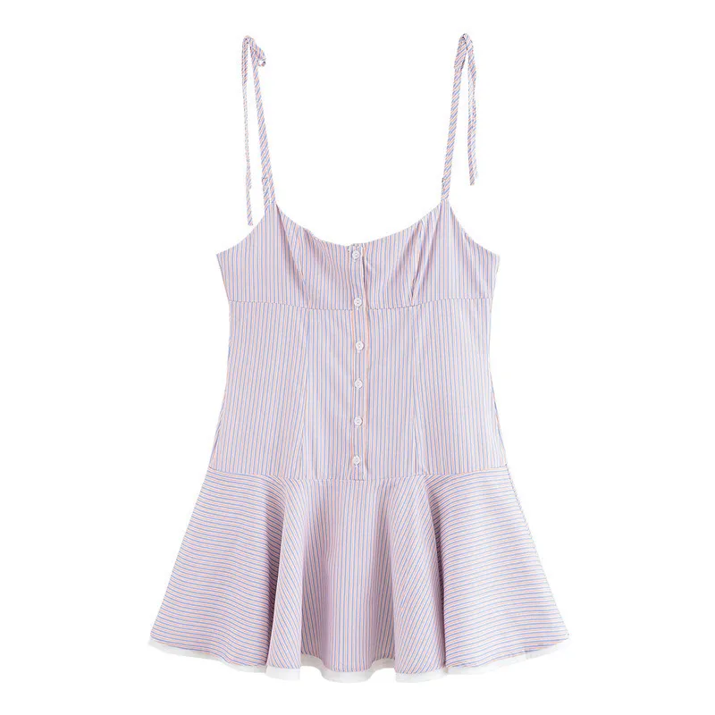 European and American Style Striped Temperament Camisole Short Dress