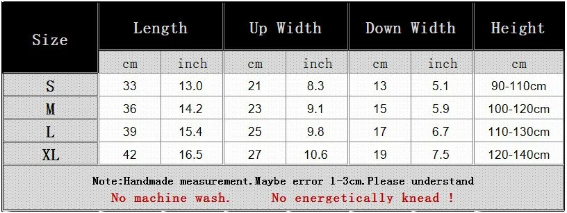 allow 2-3cm differences due to manual measurement.