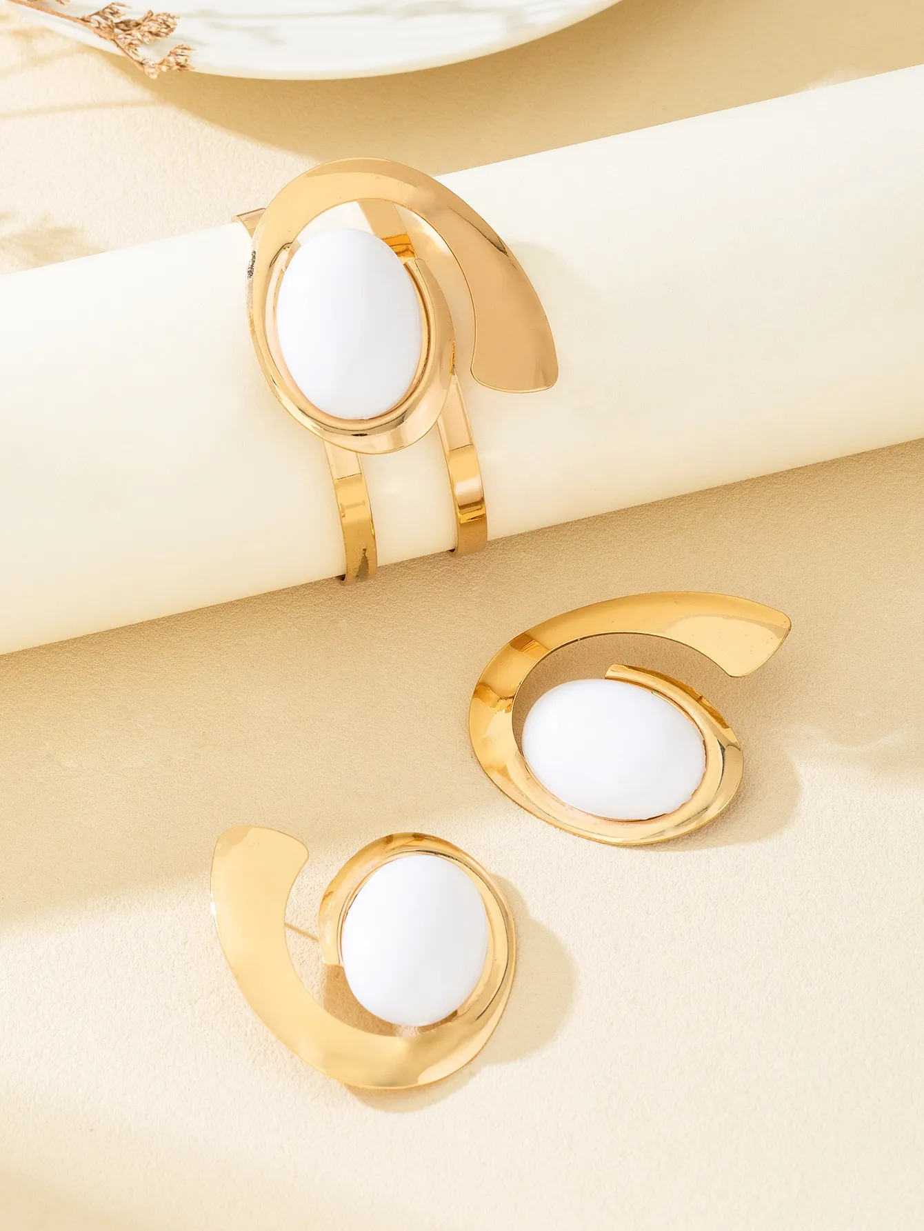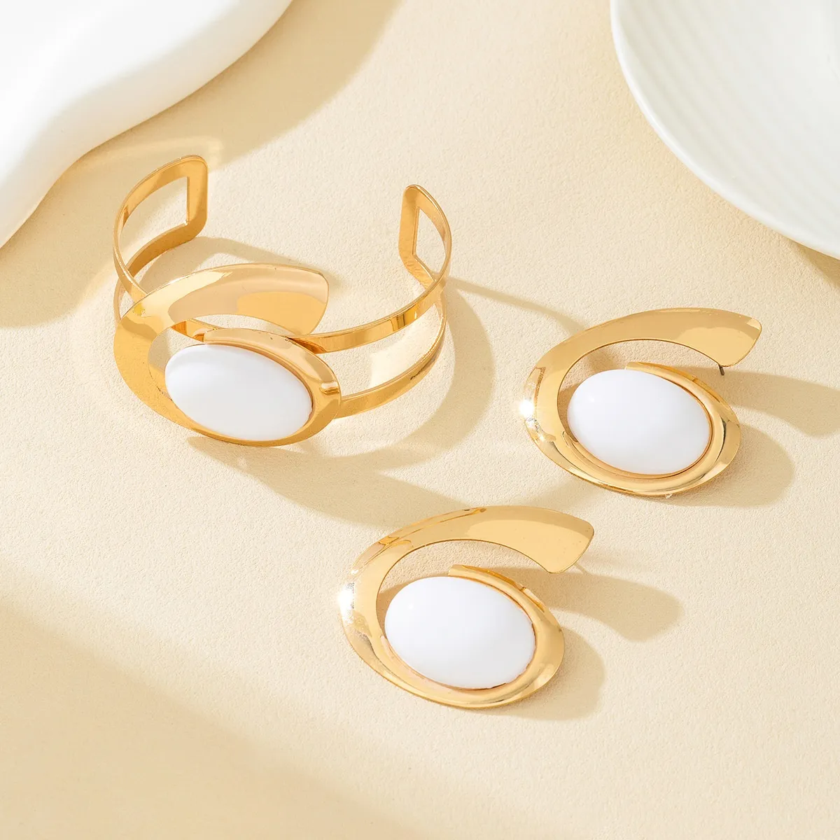The retro circle stud earrings and the irregular bangle design are inspired by classic vintage trends, giving this jewelry set a timeless yet modern appeal. The combination of geometric shapes with vintage styling makes the pieces both fashionable and versatile. The circle motif adds a sense of symmetry, while the irregular shapes provide an edgy contrast, making this jewelry set a perfect balance of chic and boldness.
