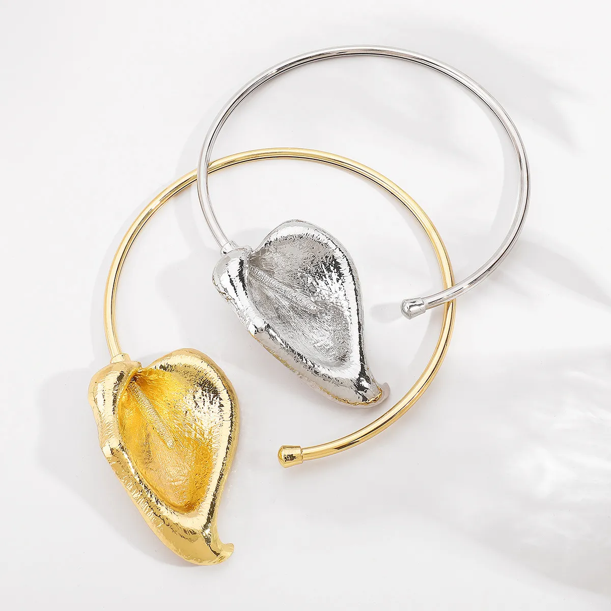 Features of the Exaggerated Poplar Leaves Three-Dimensional Metal Style Neckband Necklace