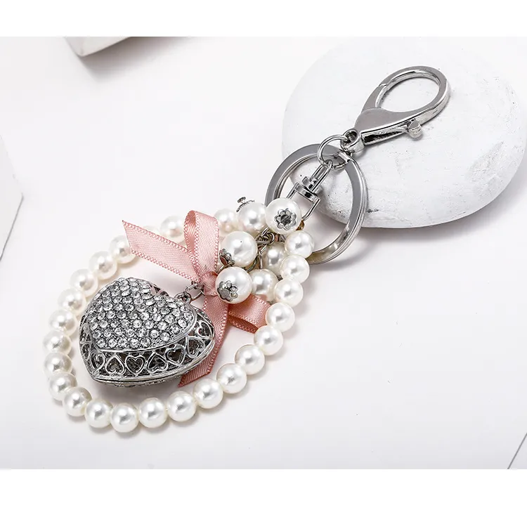 Exquisite Heart-shaped Keychain Full Diamond Peach Heart Pearl Pendant