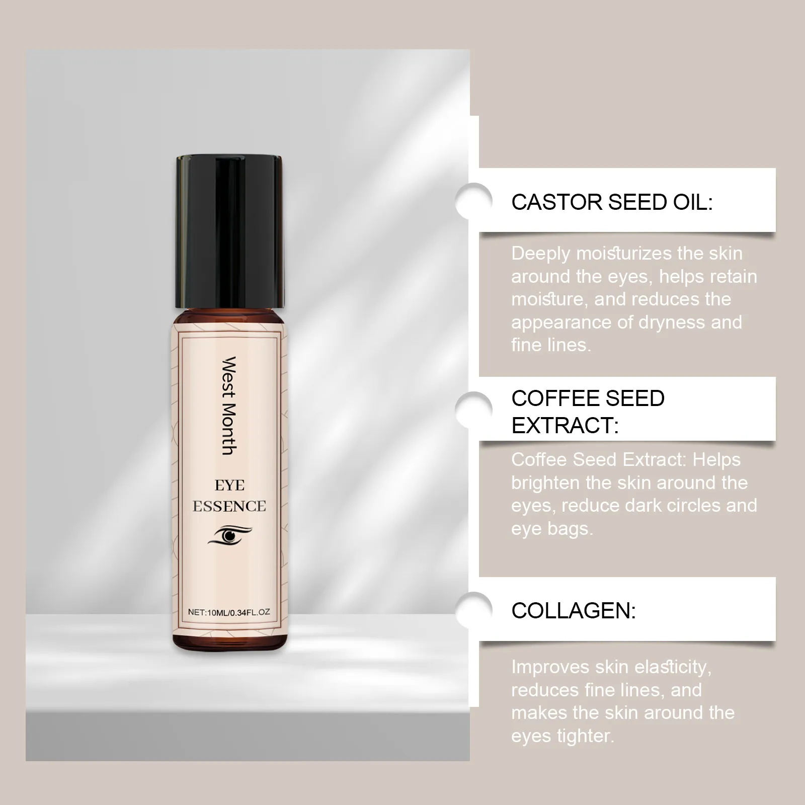 Ingredients: castor oil, frankincense oil, ascorbic acid (vitamin coffee seed extract, collagen