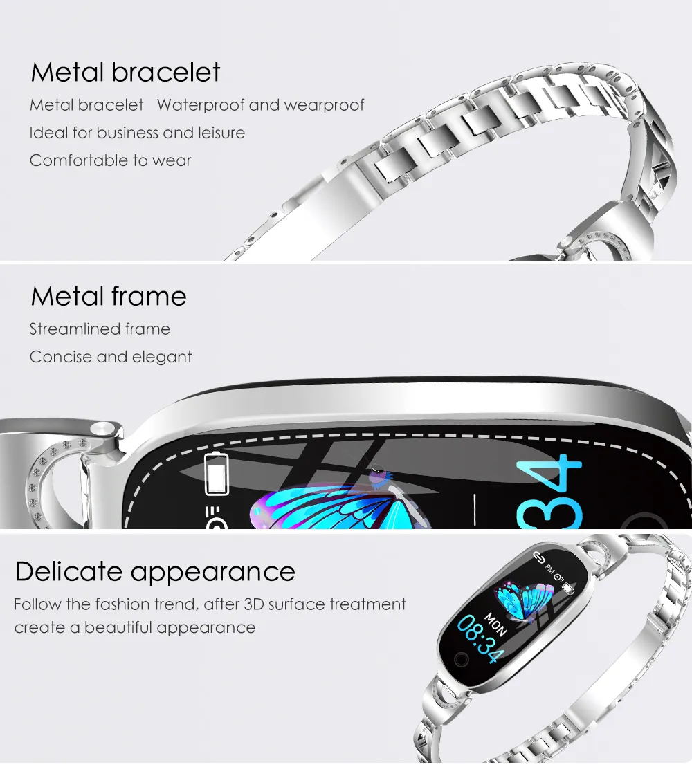 The F18 Fashion Smart Women Metal Strap Bracelet features a touchscreen interface, allowing you to navigate through apps and settings with ease. With just a simple touch, you can check your health stats, view notifications, or change settings. The intuitive interface ensures that using the bracelet is straightforward and convenient.
