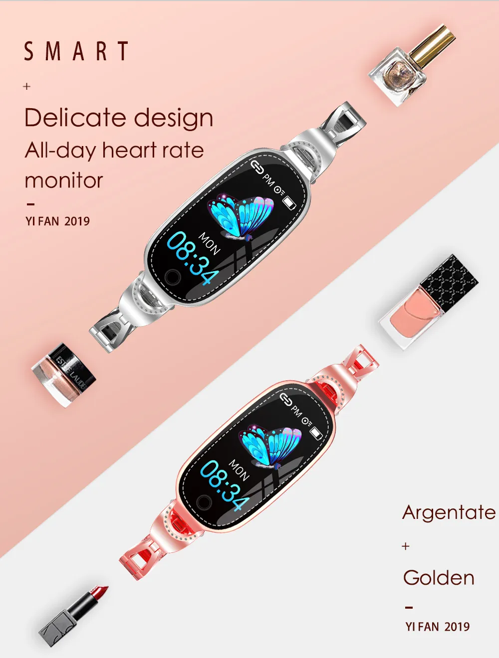 The F18 Fashion Smart Women Metal Strap Bracelet is a sophisticated and trendy smartwatch accessory that combines the best of fashion and technology. Designed for modern women, this smartwatch bracelet features a sleek metal strap that adds a touch of elegance to your wrist while providing the functionality of a high-tech smartwatch. Whether you're dressing up for a night out or just looking to add some style to your everyday look, this bracelet is the perfect combination of beauty and practicality.