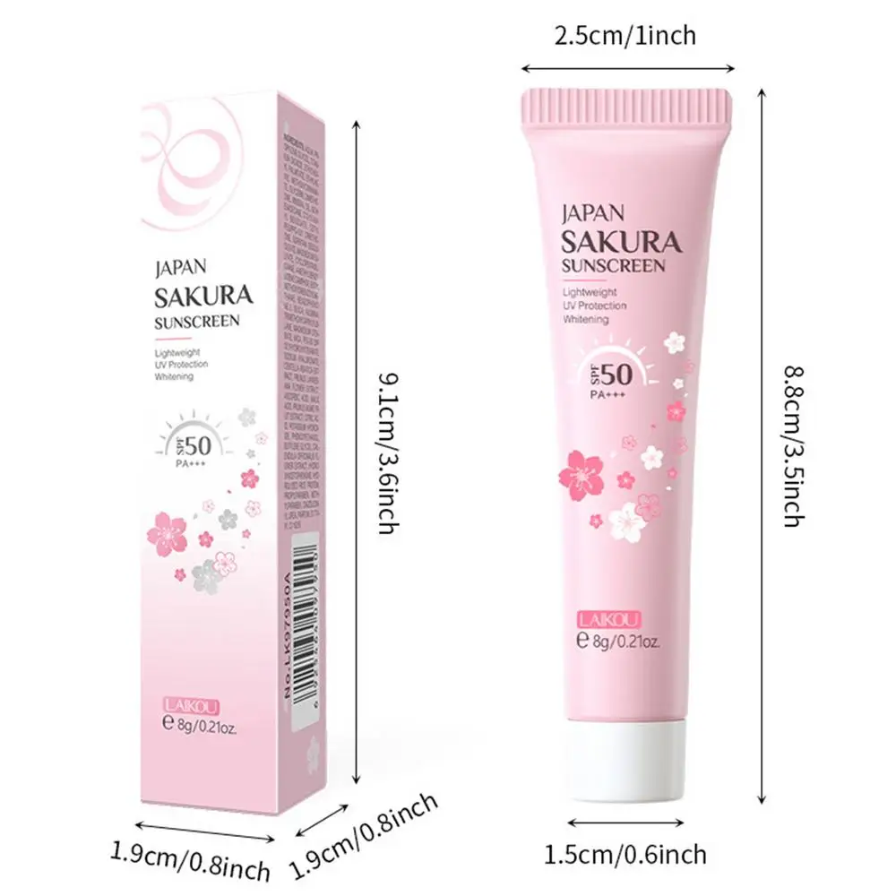 4.Light Texture: This Sakura Sunscreen has a light and refreshing texture that will not clog pores, not greasy or sticky, and very suitable for daily use. It protects your skin from harmful UV rays and keeps it hydrating and smooth.