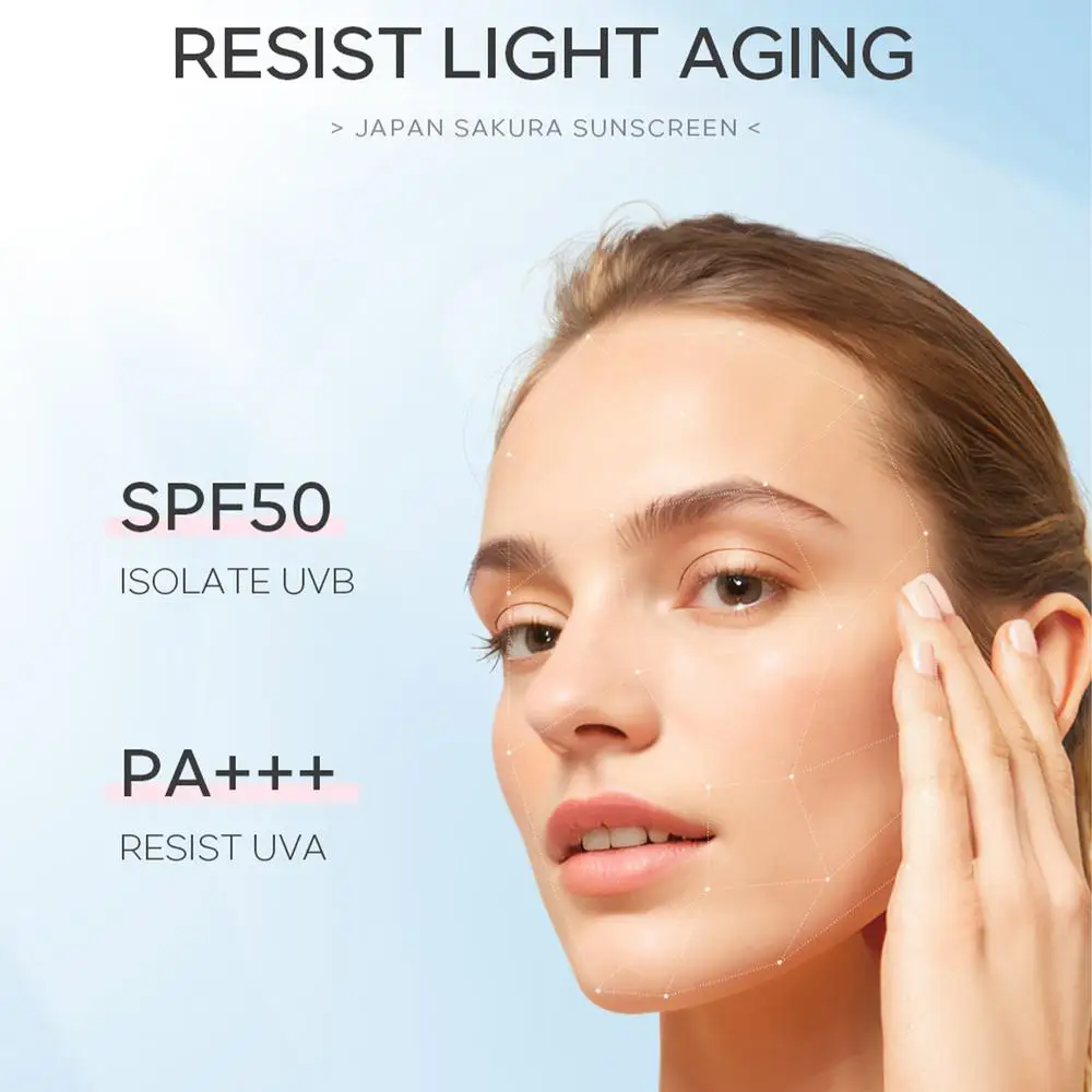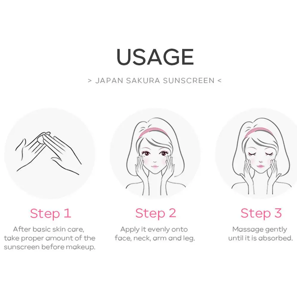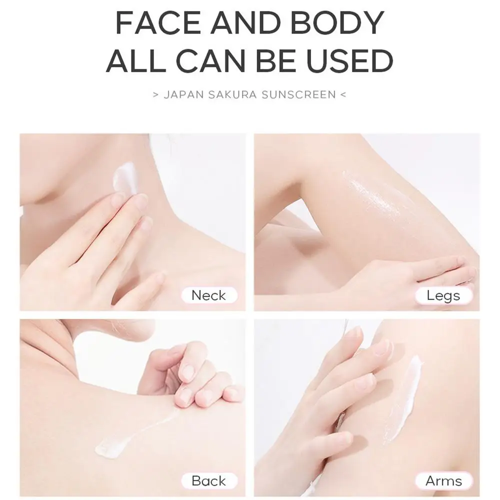 1.Advanced Sun Protection: Guard against harmful UVA and UVB rays with our ideal Sakura Sunscreen. This product not only resists sunburn and skin getting aged, but also prevents formation, ensuring perfect and even skin tone.