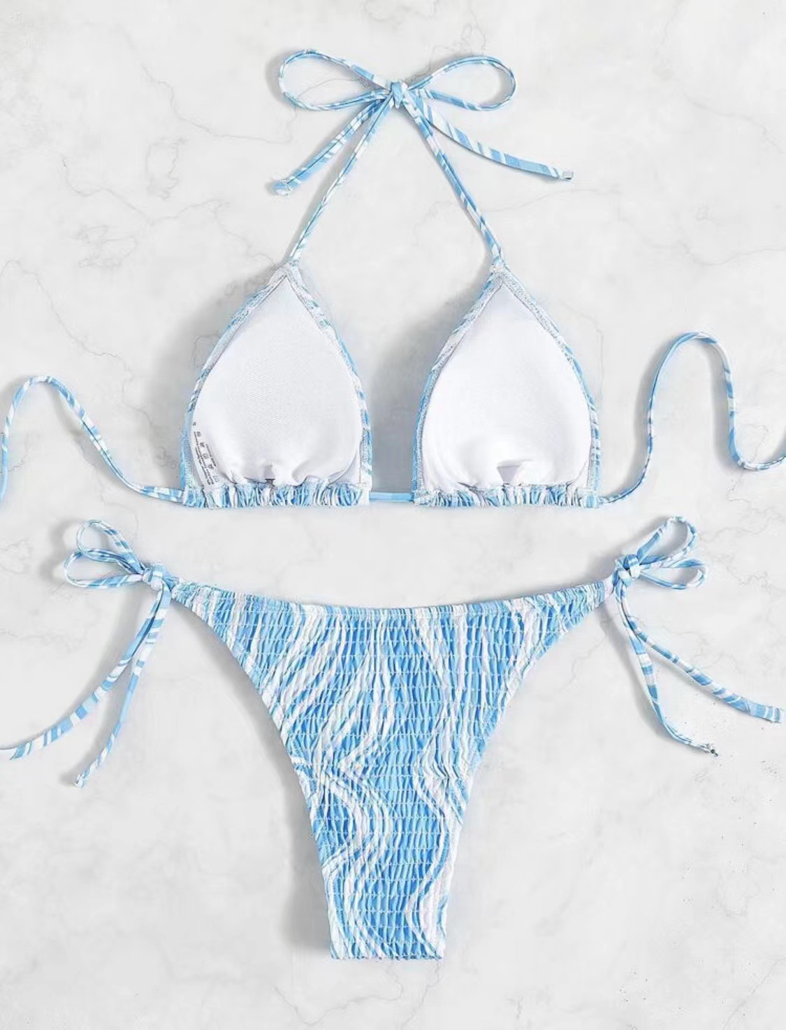 Step up your swimwear game with our Smocking Three-point Bikini Sexy Suit. This lace-up swimsuit is perfect for any summer adventure, offering style, comfort, and a flattering fit. Order now and enjoy the ultimate in beach and poolside fashion!