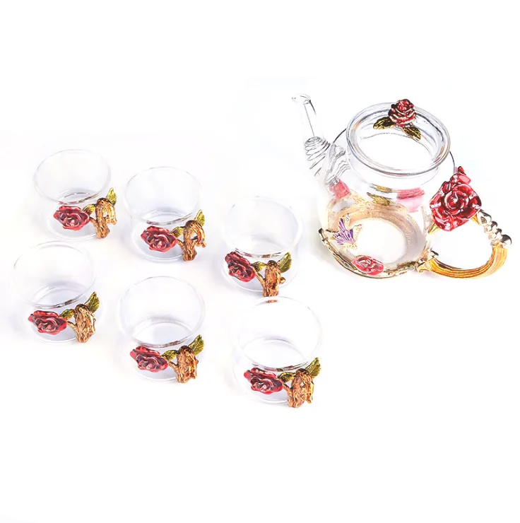 Color: red rose one pot six cup tea set, blue rose one pot six cup tea set