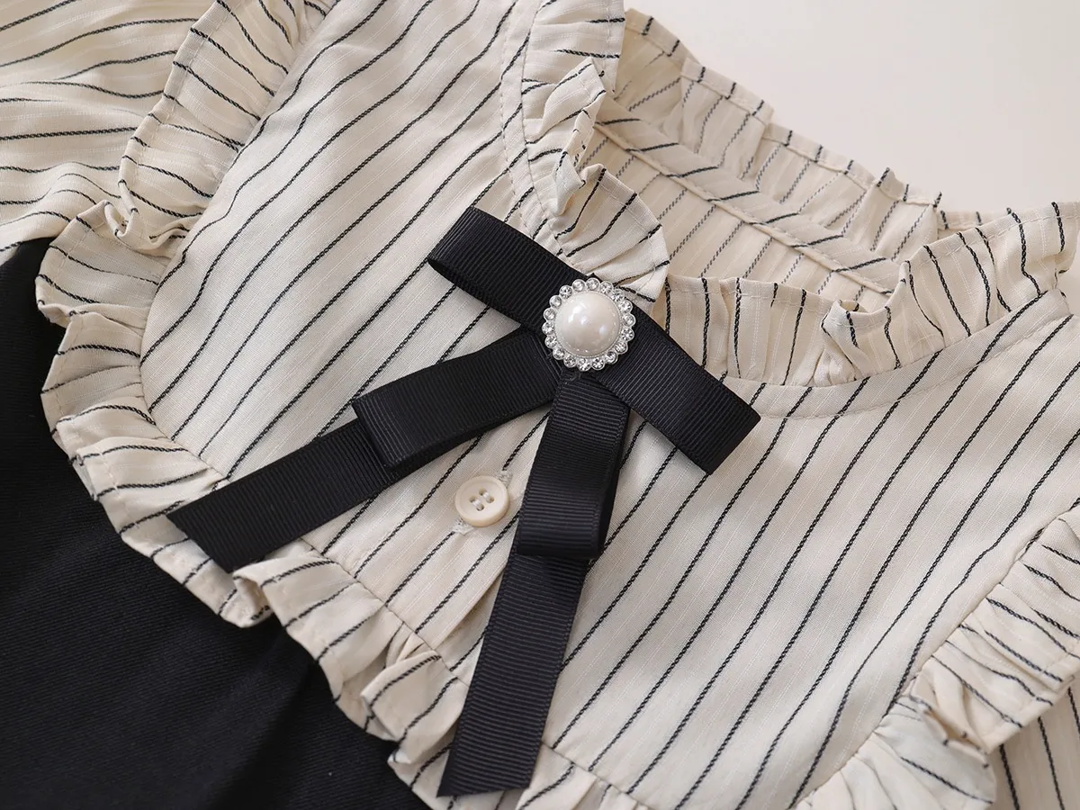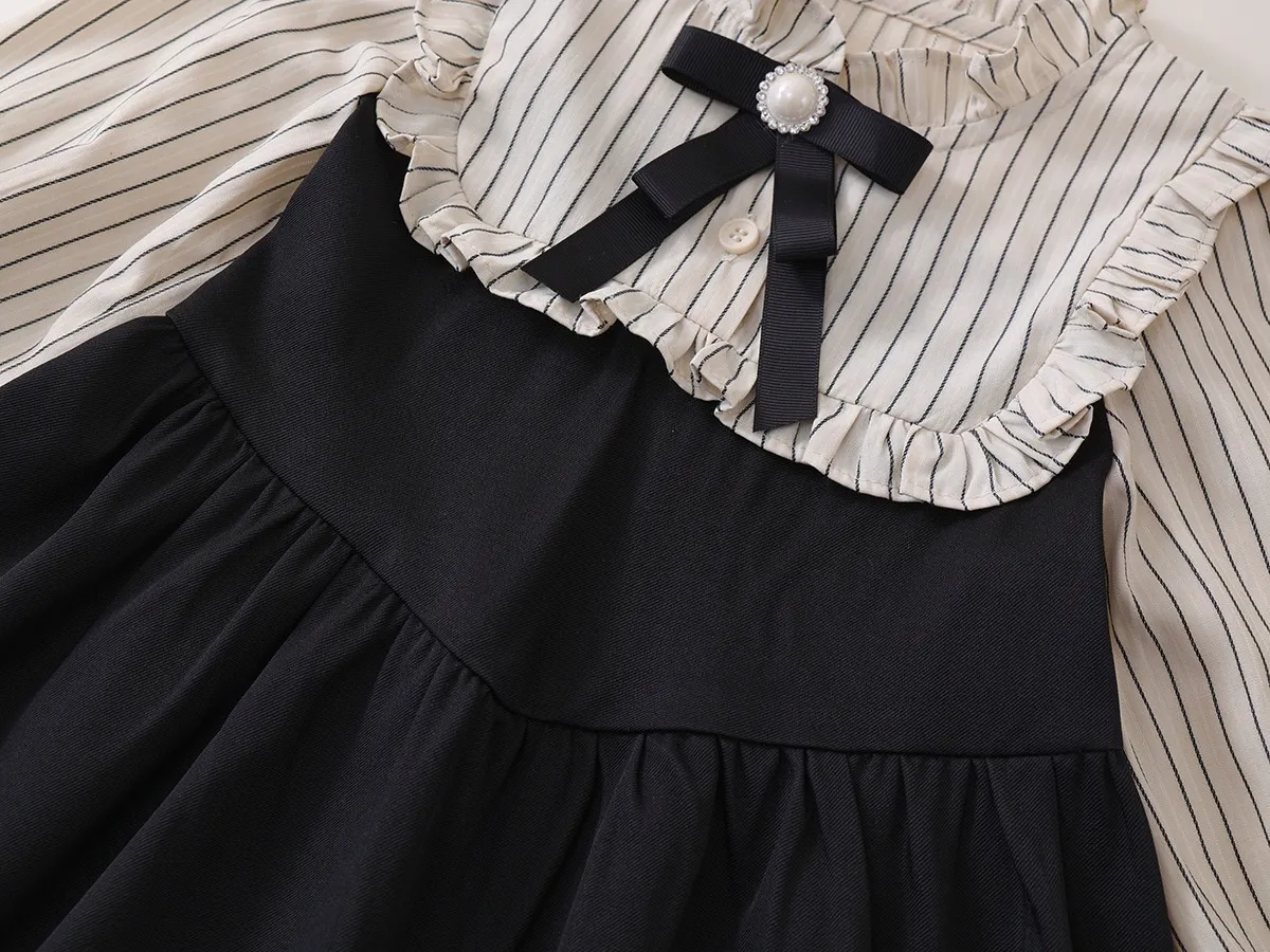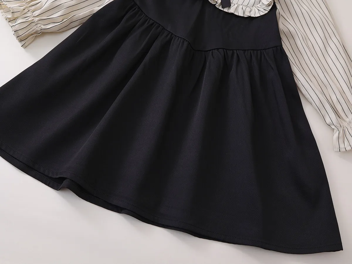 The versatility of the Fake Two-piece Korean Striped Contrast Color Long Sleeve Skirt makes it ideal for various occasions. Whether it's for a day of school, a weekend outing, or a family gathering, this outfit will ensure your little one stays fashionable and comfortable. It's a stylish choice that can easily be dressed up or down with the right accessories.