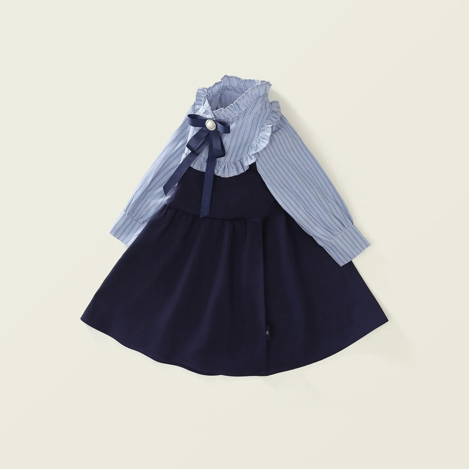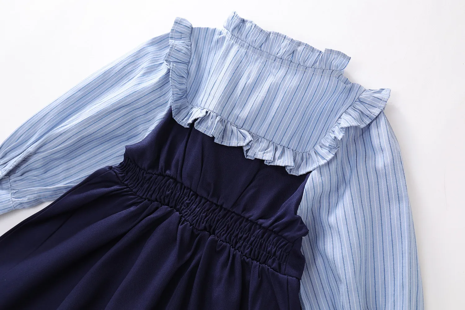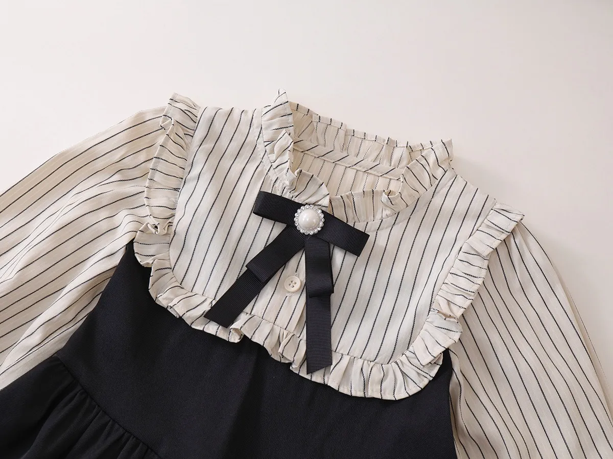 The versatility of the Fake Two-piece Korean Striped Contrast Color Long Sleeve Skirt makes it ideal for various occasions. Whether it's for a day of school, a weekend outing, or a family gathering, this outfit will ensure your little one stays fashionable and comfortable. It's a stylish choice that can easily be dressed up or down with the right accessories.