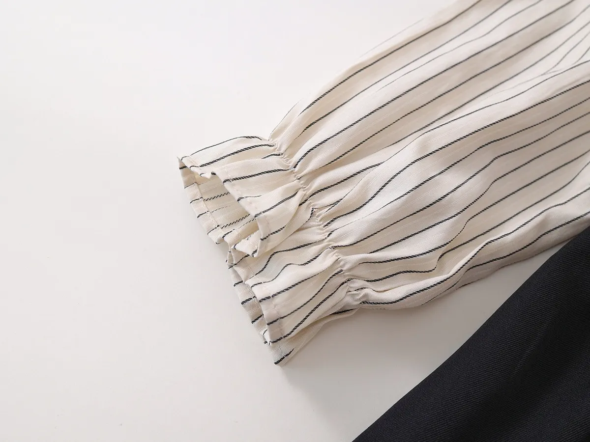 Fake Two-piece Korean Striped Contrast Color Long Sleeve Skirt: Stylish, Modern, and Full of Personality