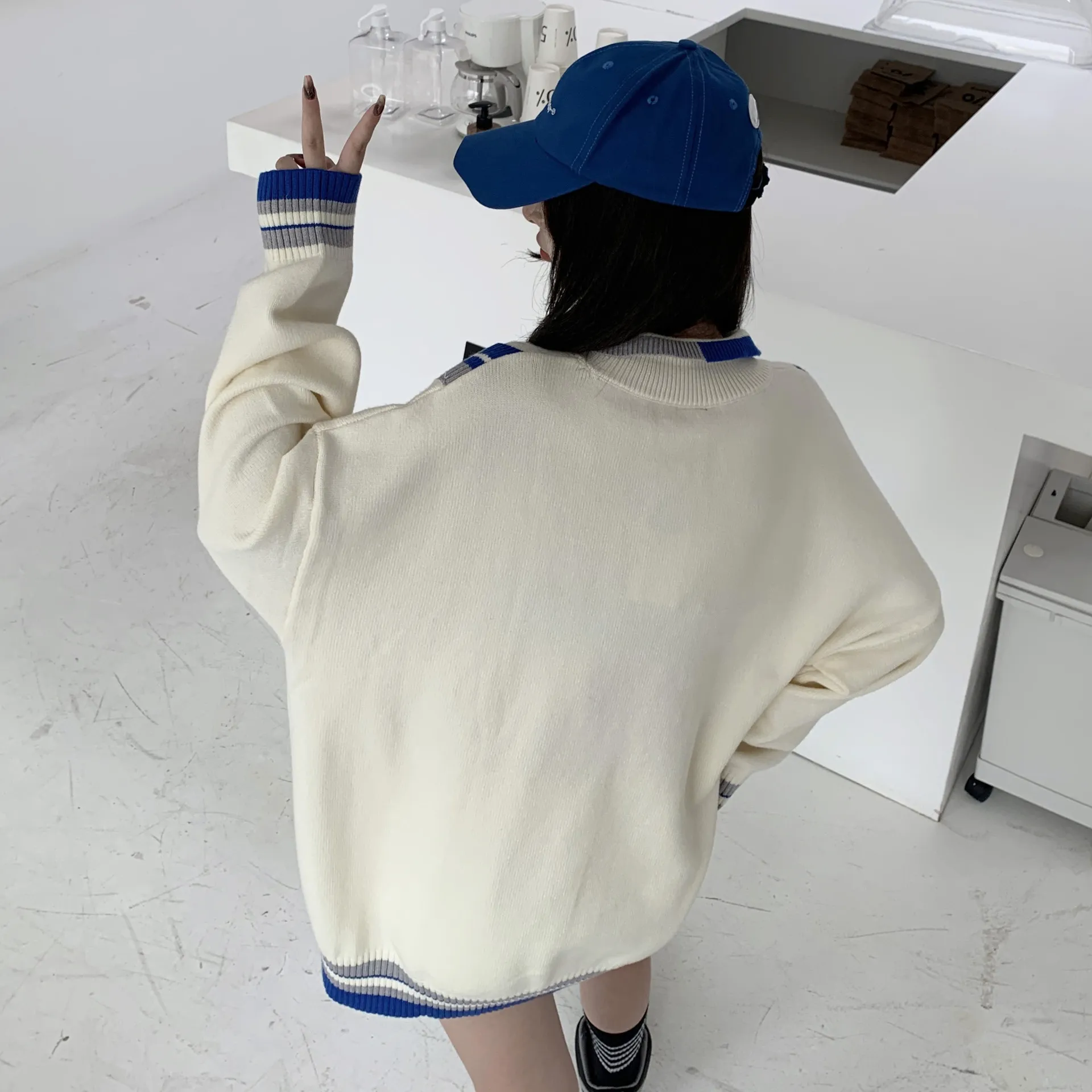 The Fake Two V-neck Knits Preppy Long-sleeved Top is incredibly versatile, allowing for a range of styling options. Wear it on its own for a clean, minimalist look, or layer it with jackets, cardigans, or blazers for a more elevated outfit. It’s a great choice for pairing with skirts, trousers, or even shorts, depending on the season and your personal style.