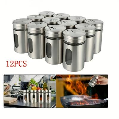 Faridabio 12pcs Stainless Steel Seasoning Jars with Glass Lids Durable Spice & Salt Shakers for BBQ and Cooking