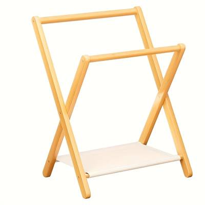FARIDABIO Foldable Wooden Coat Rack Freestanding Multipurpose Valet Stand with Basket