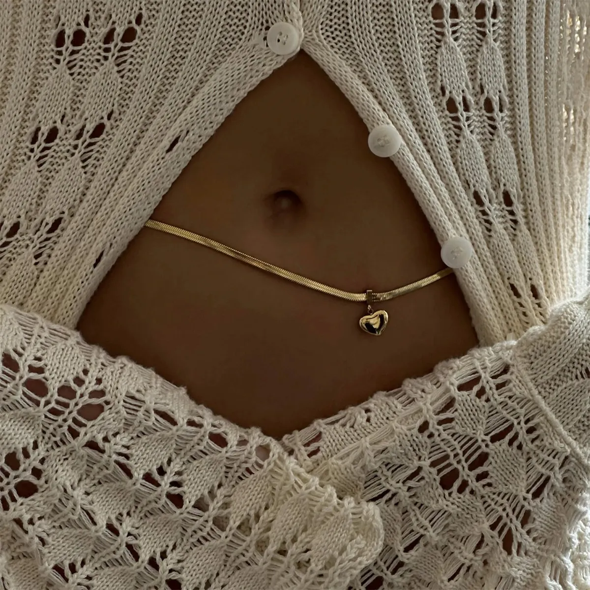 This peach heart waist chain is perfect for wearing on beach vacations or poolside outings. Its lightweight and charming design make it an ideal accessory to pair with bikinis, cover-ups, or summer dresses.