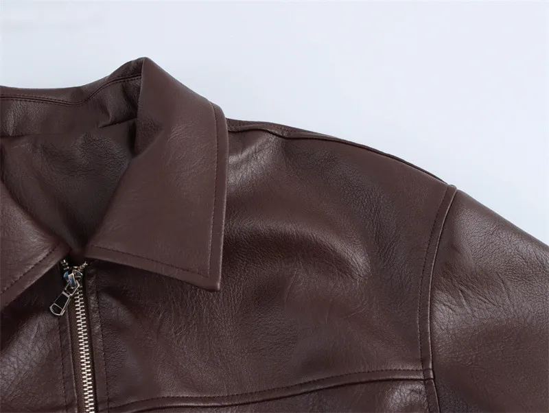 The Fashion American Style Motorcycle Clothing Vintage Loose Lapels Zipper Bomber Jacket combines classic motorcycle jacket aesthetics with a vintage flair, offering a bold and edgy look for the modern rider or fashion enthusiast. The loose lapels and zipper details add a unique touch of ruggedness to this stylish bomber jacket, making it the perfect choice for those who want to stand out with their outerwear. Whether you're hitting the road on your bike or simply want to add a touch of American-inspired fashion to your wardrobe, this jacket offers the best of both worlds.