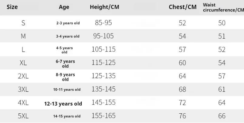 - Size Range: Available in various sizes for boys and girls (typically from 2T to 14 years)