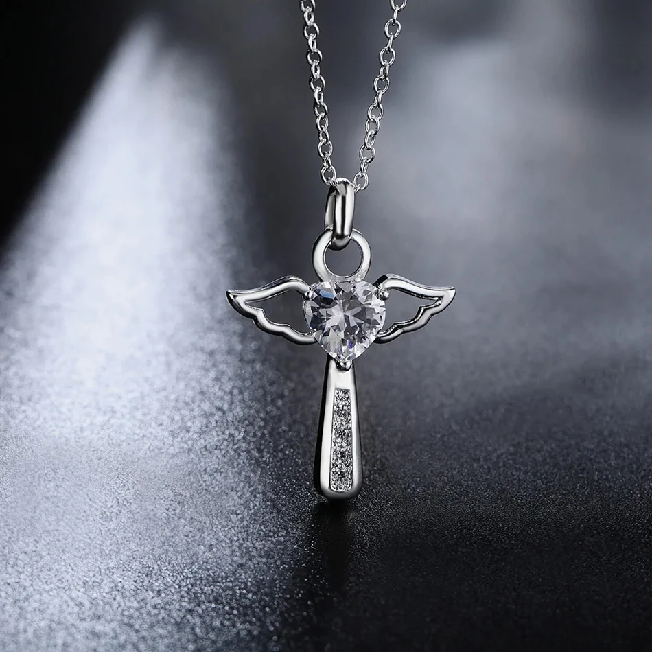 Crafted with high-quality 925 sterling silver, this necklace offers a perfect blend of luxury and durability. Whether you're seeking a symbolic accessory for a significant event or simply want to add a touch of elegance to your daily ensemble, this angel crystal cross necklace will complement your style with its radiant charm.