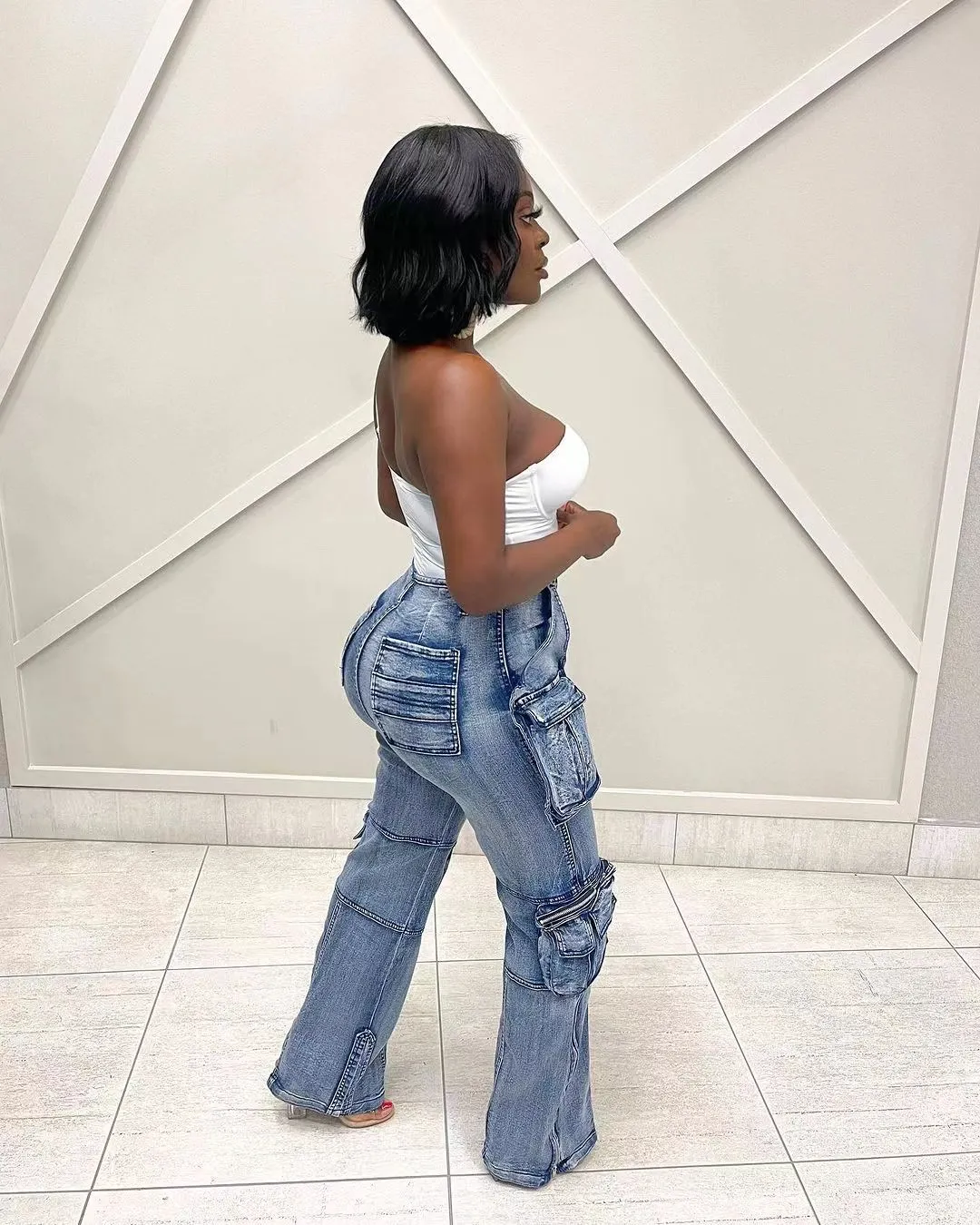 - Multi-pocket Functionality: With multiple pockets strategically placed throughout the jeans, you'll have ample space to carry your essentials, making these jeans not just fashionable but incredibly practical for everyday wear.