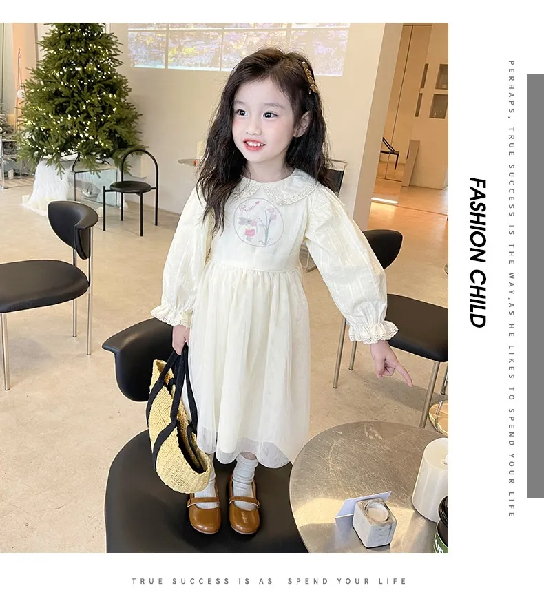 The dress features a timeless design with subtle details such as soft pleats, ruffles, or lace trims that elevate its overall look. Whether your child is attending a birthday party, a family gathering, or a casual weekend outing, this dress adds a touch of elegance without being overly formal. Its versatility makes it suitable for any occasion, from outdoor play to special moments, ensuring your child always looks effortlessly stylish.