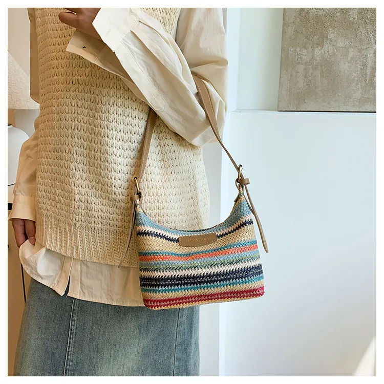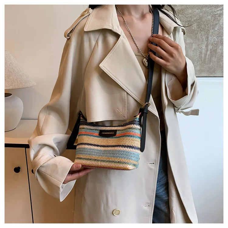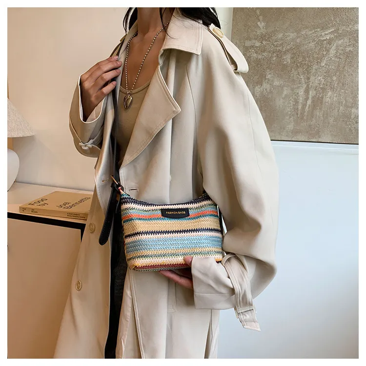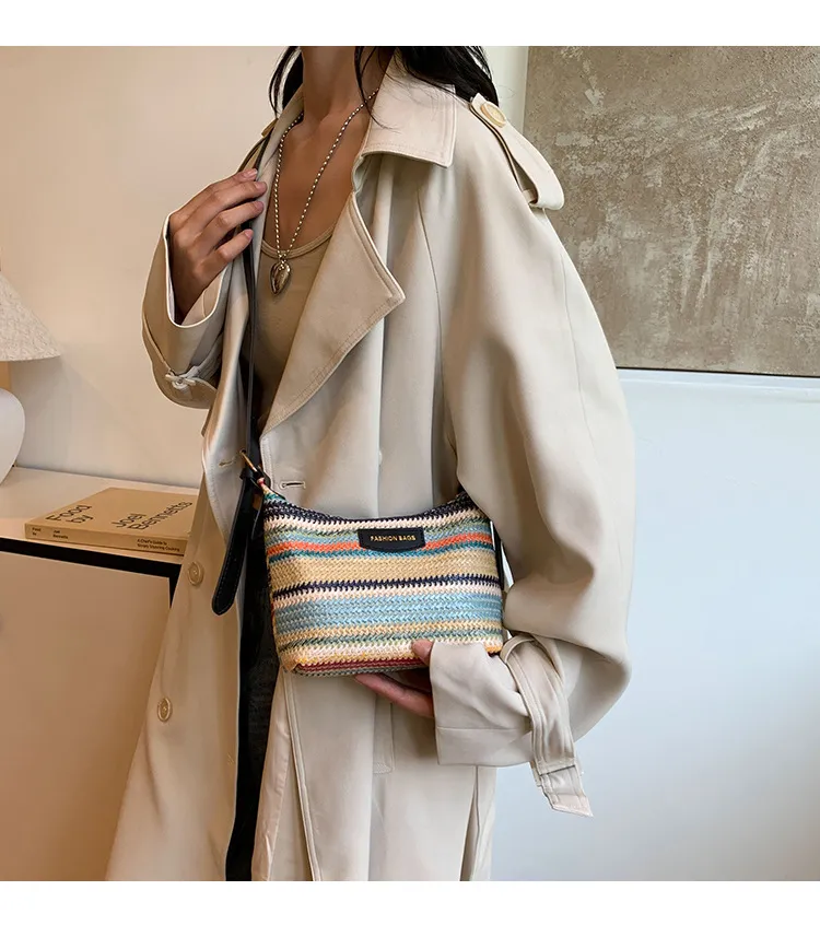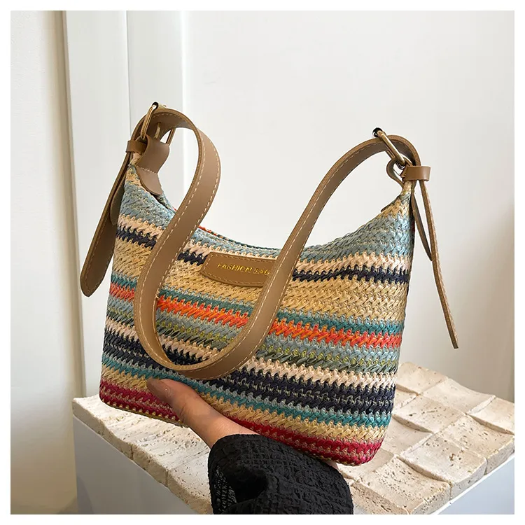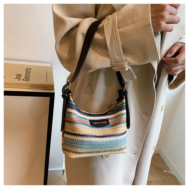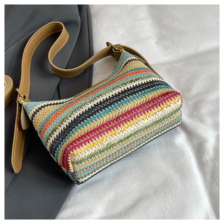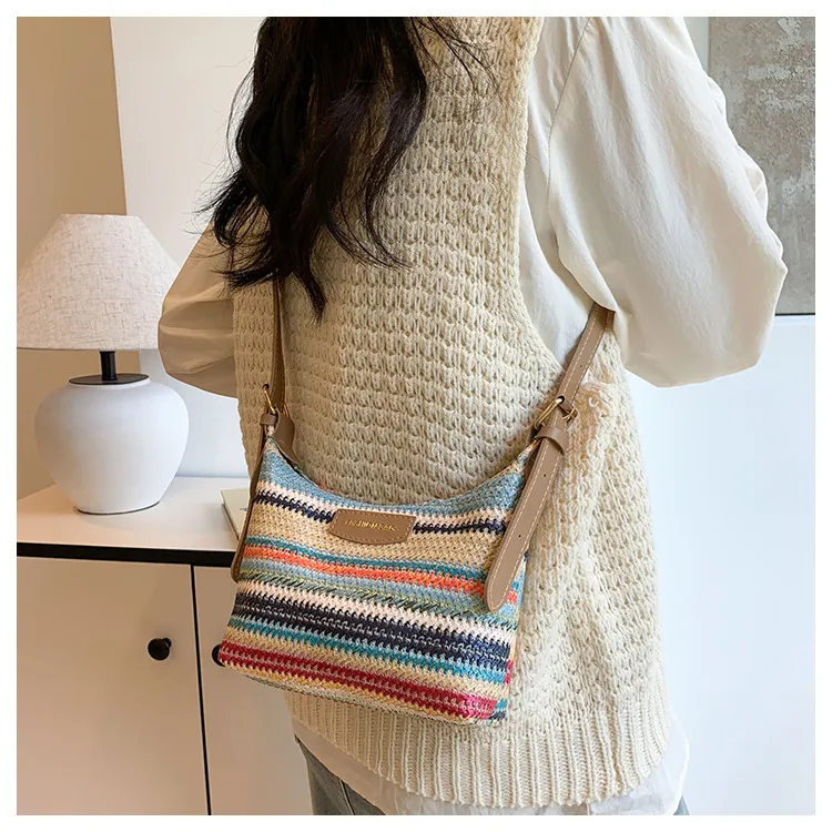 Fashion Color Contrast Woven Bag Women's Simple Shoulder Bag
