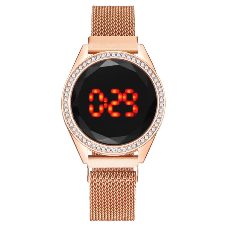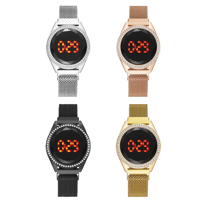 Fashion Diamond-Studded LED Electronic Ladies Watch with Lazy Magnet