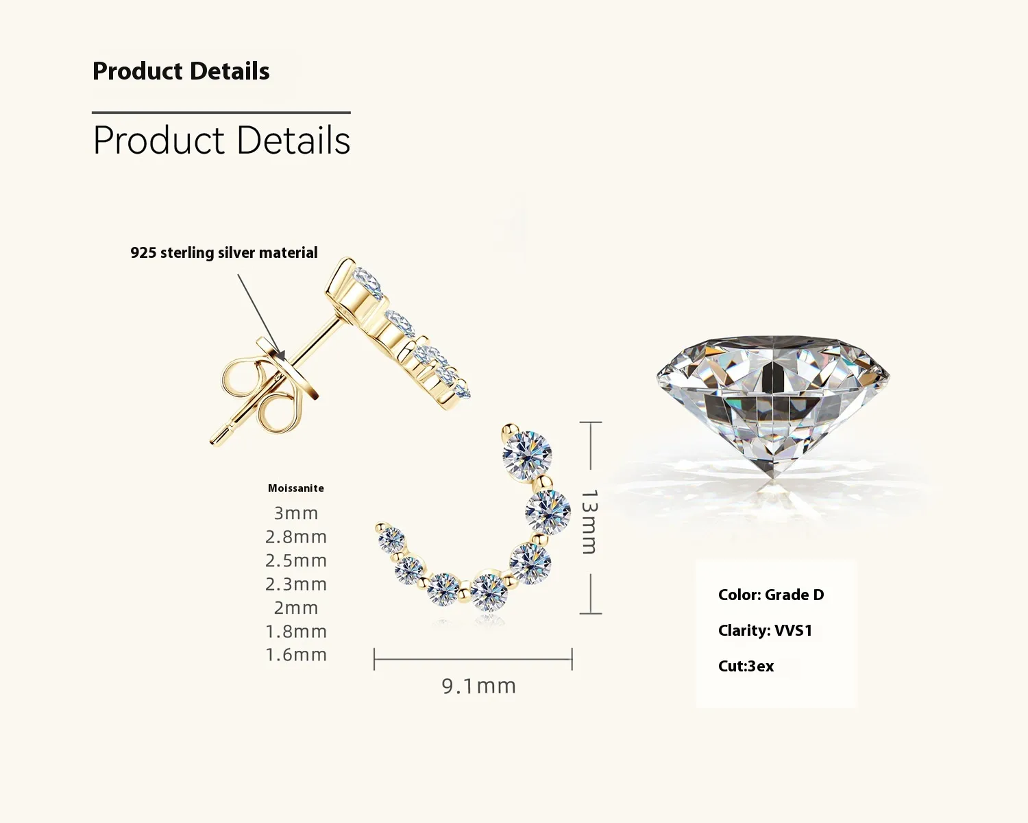 These earrings are made from sterling silver or platinum-plated settings, ensuring a luxurious and long-lasting finish. The metal used is hypoallergenic, making them perfect for those with sensitive skin. The durable construction guarantees that these earrings will remain in excellent condition for years, retaining their shine and elegance.