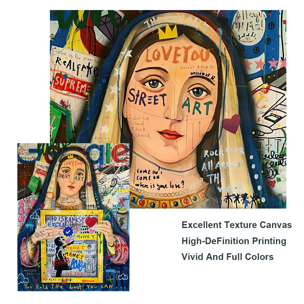 Fashion Graffiti Art Poster Girl Hunting Balloons Street Art Canvas Painting