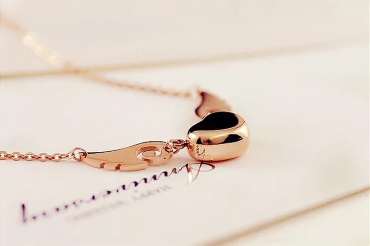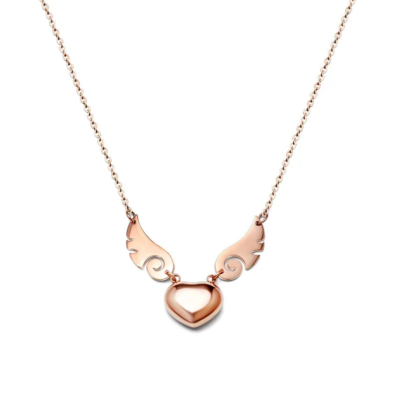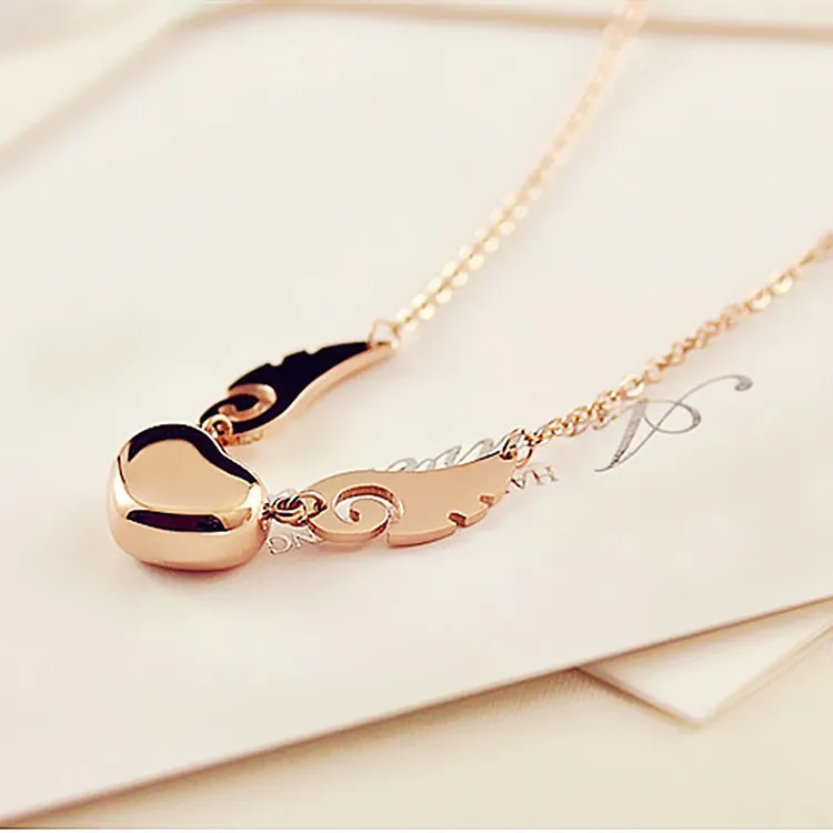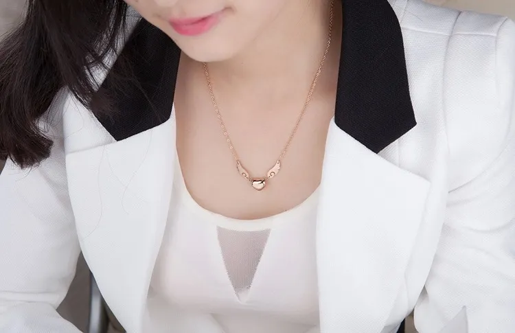 Fashion Heart Pendant Angel Wing Necklace