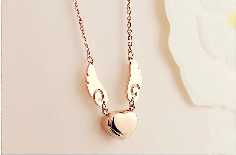 Fashion Heart Pendant Angel Wing Necklace