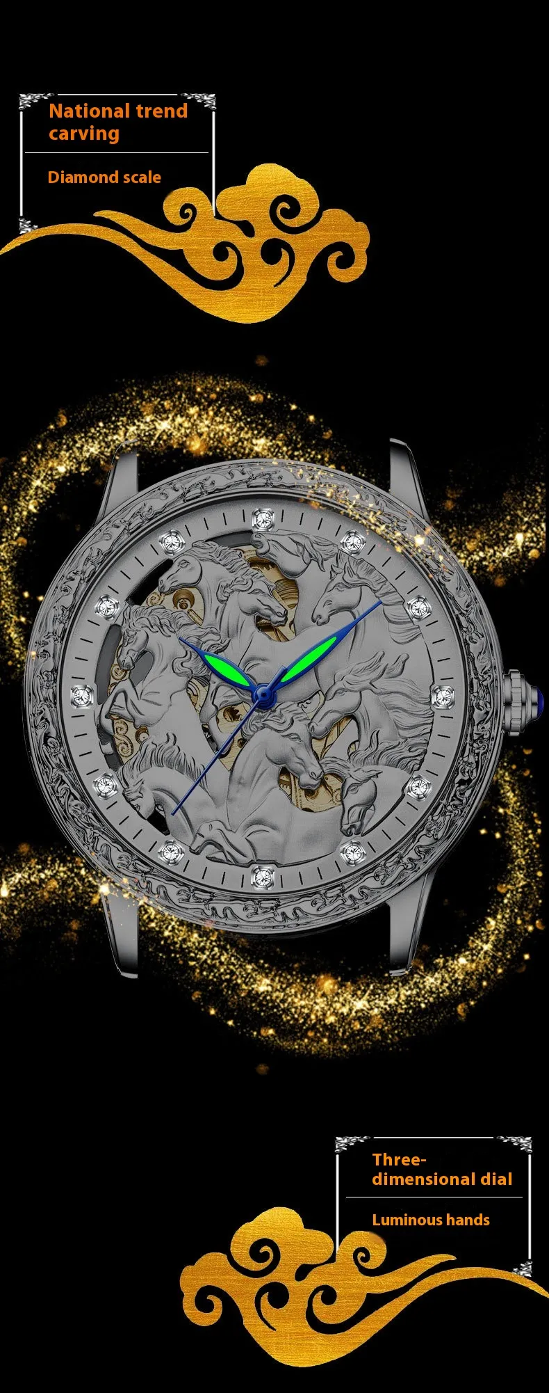 - Exposed Mechanics: See the movement in action through the intricate openwork design.