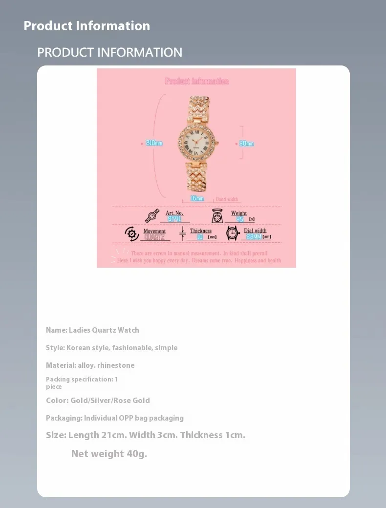 The Fashion Jewelry 2pcs Luxury Fashion Women Watch Set is a sophisticated, versatile, and meaningful accessory combination that brings together precise quartz timekeeping and elegant jewelry design. Its polished silver strap watch, complemented by a coordinating alloy bracelet, creates a unified look that enhances everyday style while serving functional needs. With premium materials, thoughtful construction, and comfortable closures, this set delivers both longevity and aesthetic value.