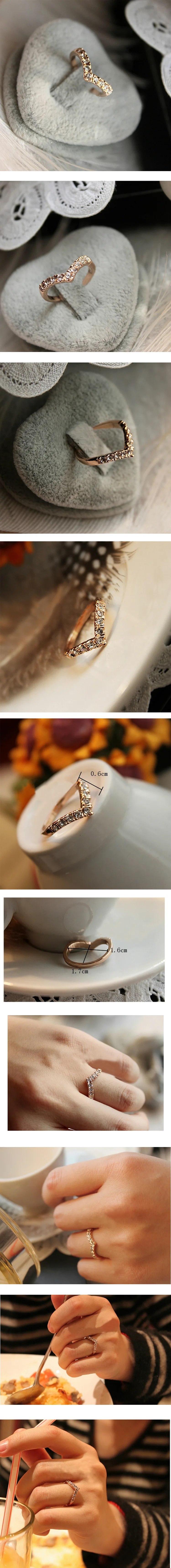 Fashion Jewelry Ring V-type Unique Inlaid Imitation Crystal Design