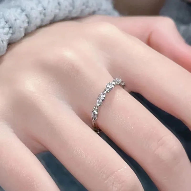 Inspired by nature's elegance, the ring showcases a sophisticated vine motif that twists and turns in a delicate embrace. The winding design symbolizes the intertwining paths of love, growth, and strength, making it a meaningful piece that speaks to the heart. Each curve of the vine is meticulously adorned with small, sparkling stones that glimmer with every movement, adding a subtle yet captivating shine. This intricate detailing enhances the overall beauty of the ring, making it a standout accessory that captures attention and admiration.