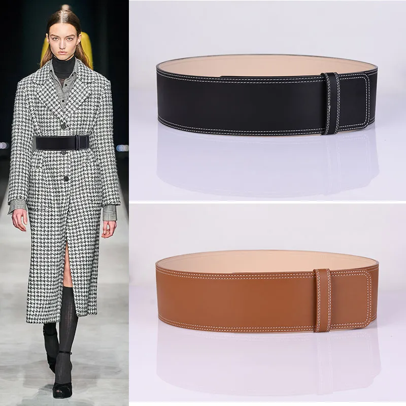 Fashion Korean Style Woolen Coat Belt Female Leather