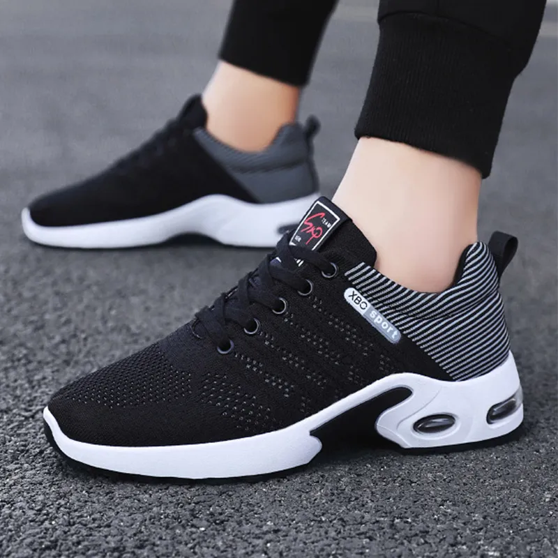 Fashion Mesh Shoes With Striped Design Men Outdoor Breathable Lace-up Sneakers Csual Lightweight Running Sports Shoes For Men