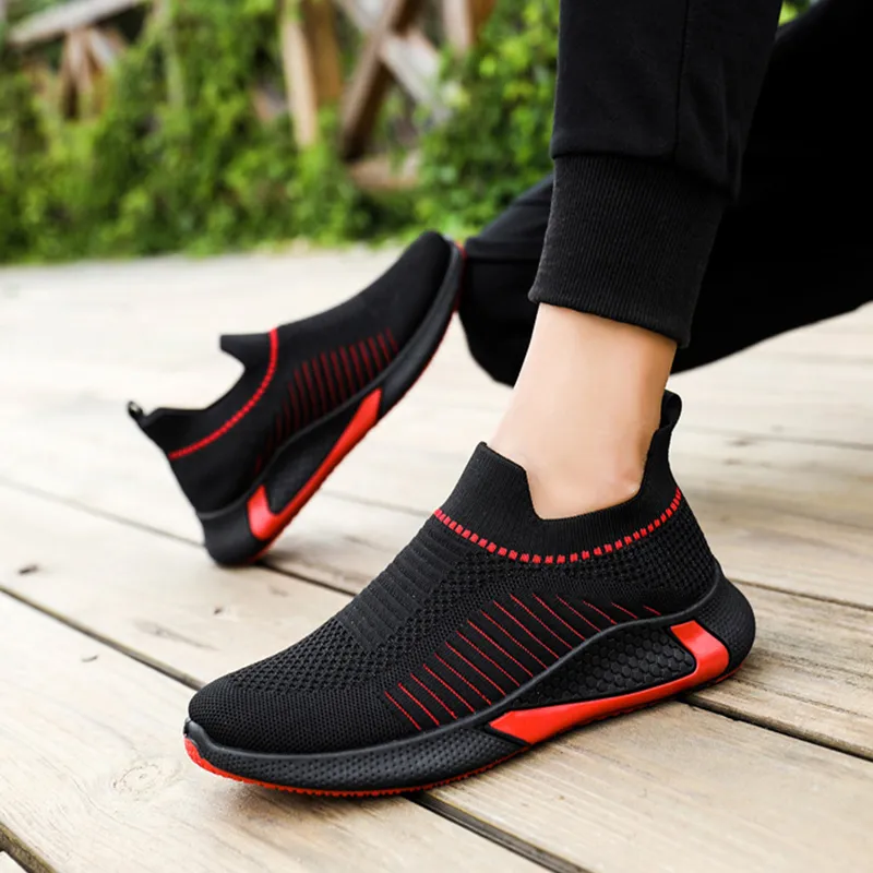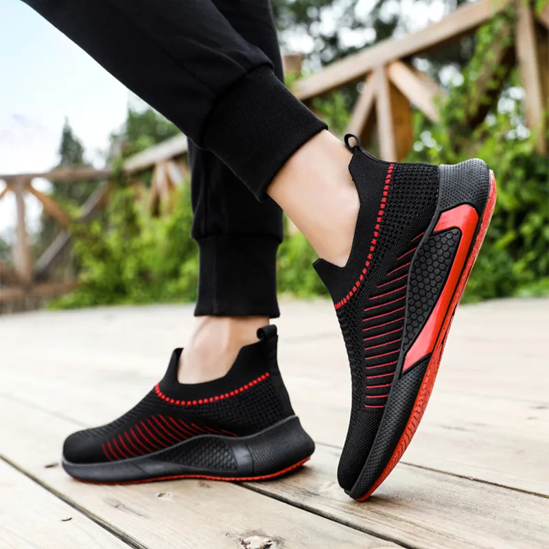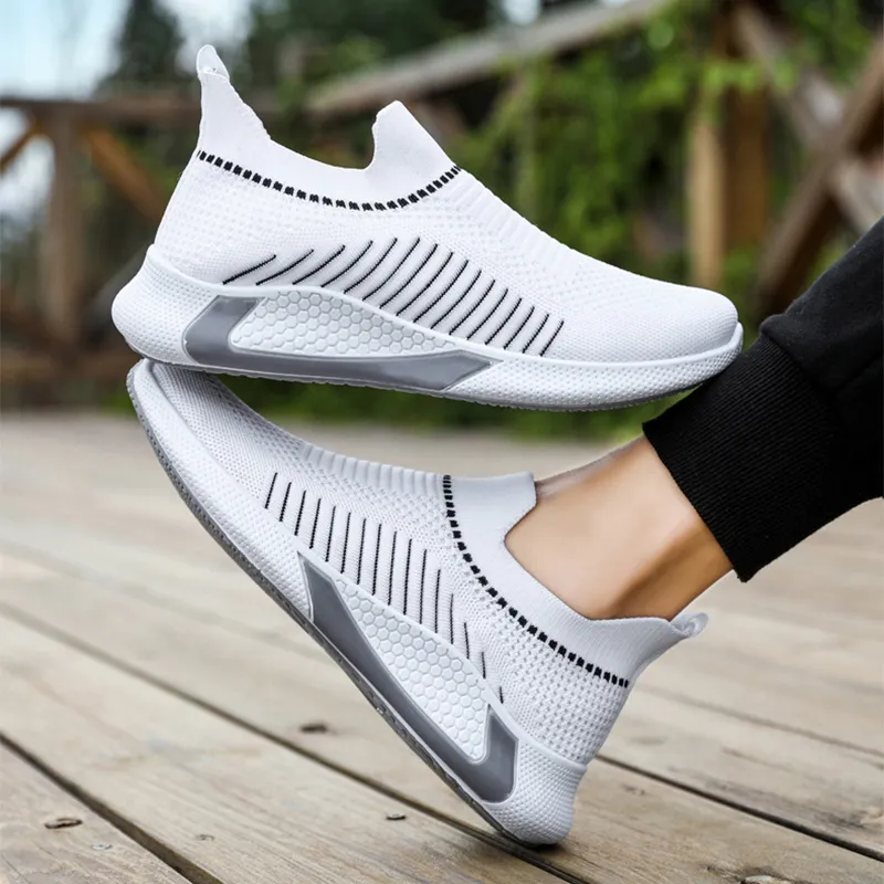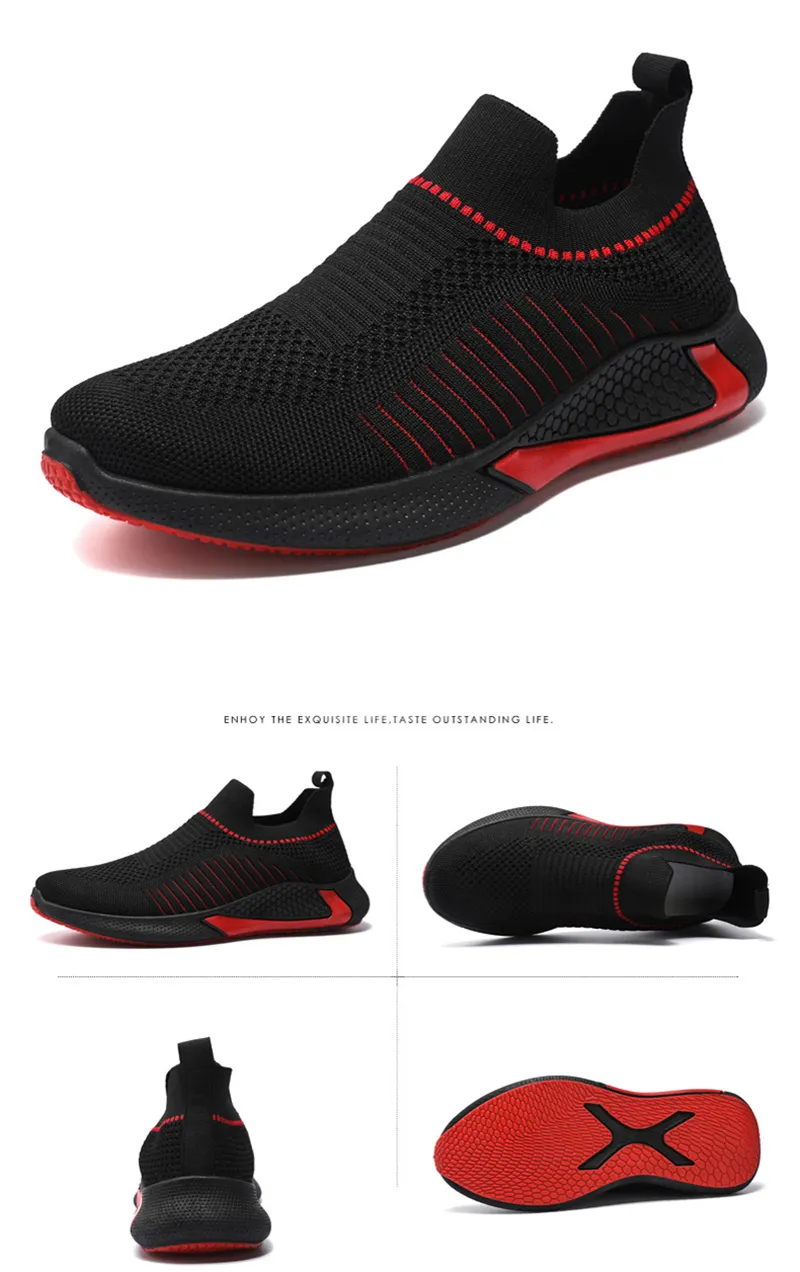 Fashion Mesh Sock Shoes With Striped Design Men Outdoor Breathable Slip-on Sneakers Csuale Lightweight Running Sports Shoes