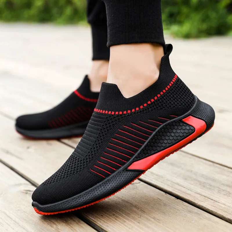 Fashion Mesh Sock Shoes With Striped Design Men Outdoor Breathable Slip-on Sneakers Csuale Lightweight Running Sports Shoes