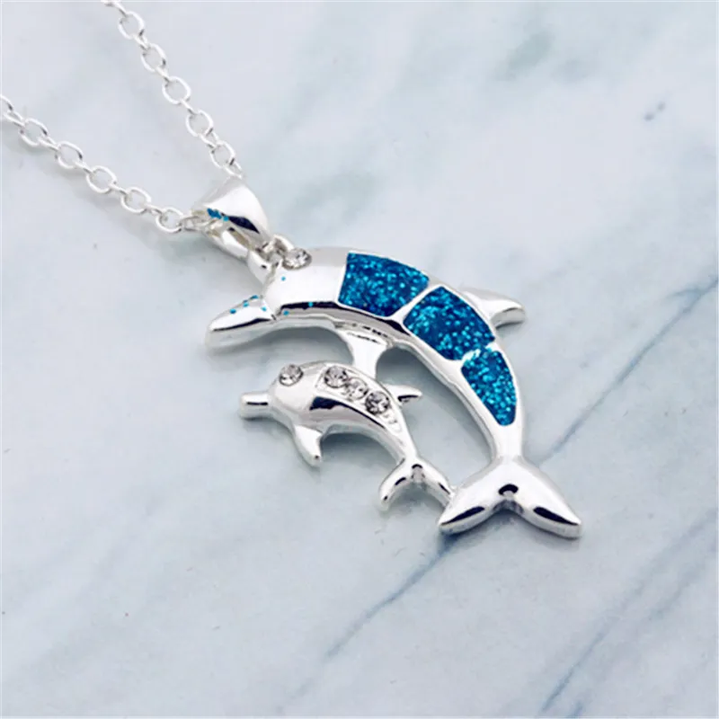 Fashion New Opal Dolphin Silver Pendant