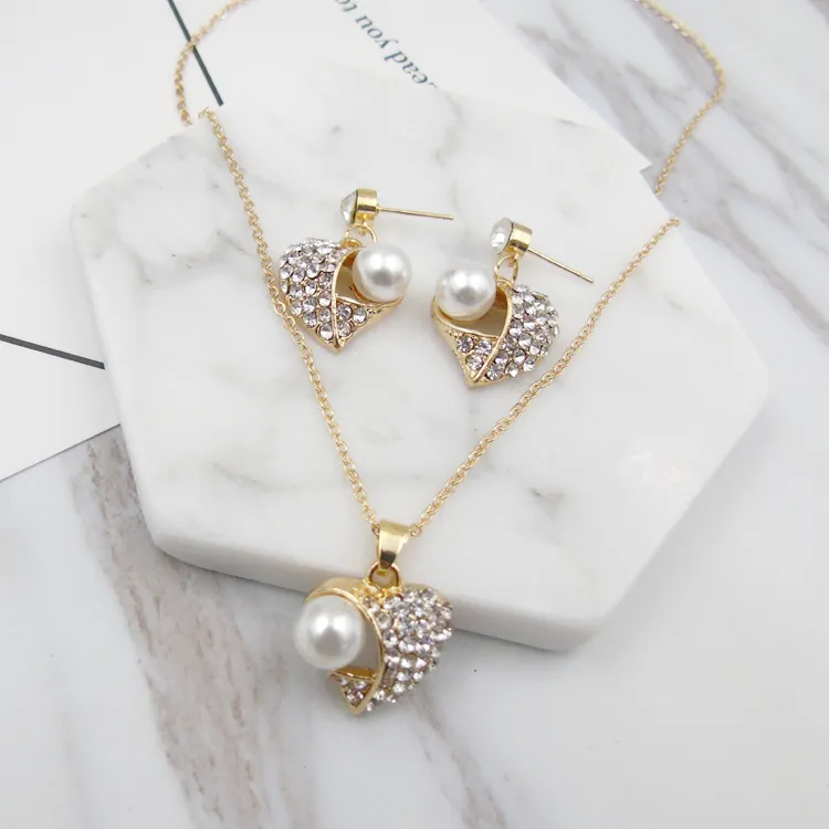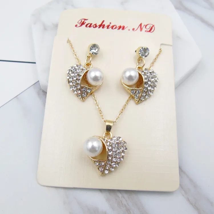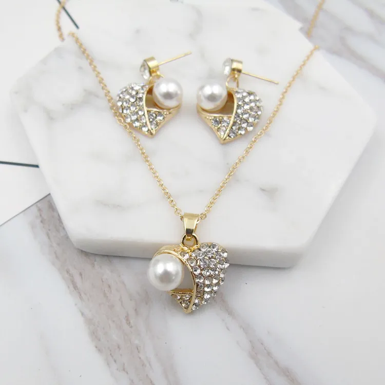 Fashion Peach Heart Pearl Jewelry Set