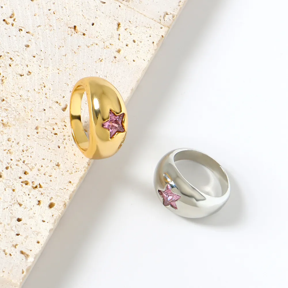 Color: F4-5 Gold Pink Five Star ring, F4-6 White Gold Pink Five Star ring