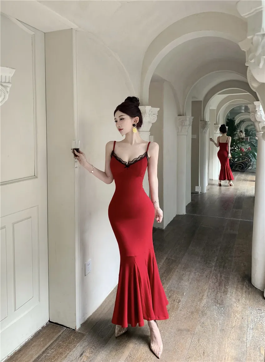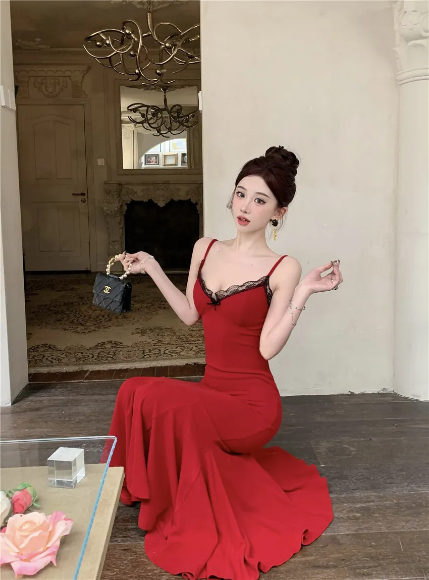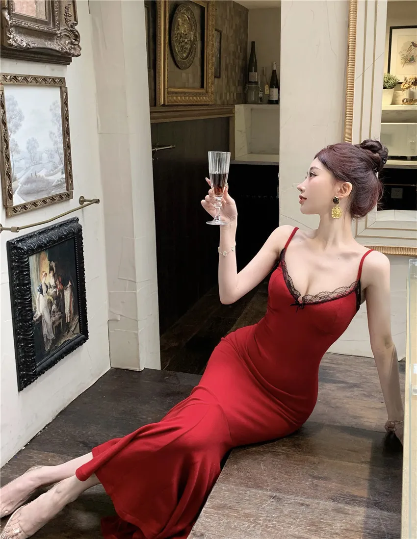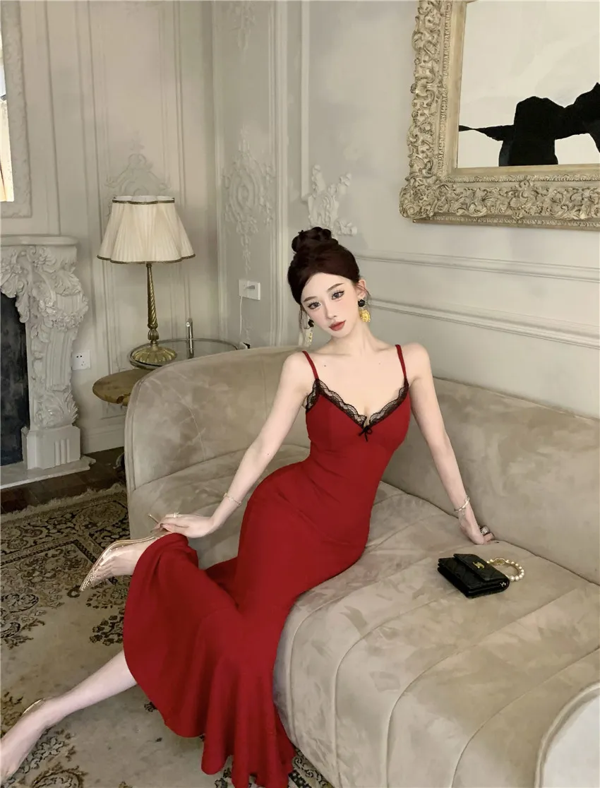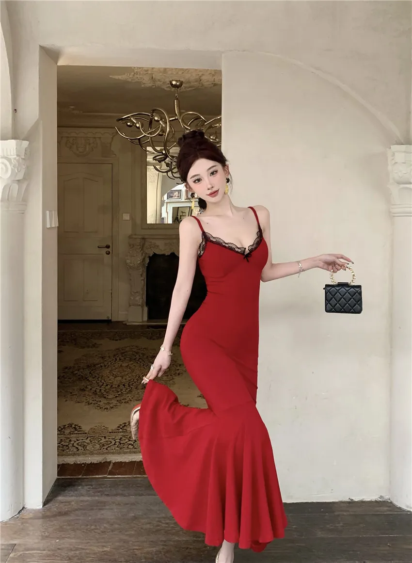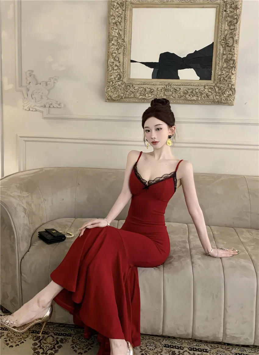 Fashion Personality Lace V-Neck Sling Dress for Women: Elegant, Chic, and Effortlessly Stylish