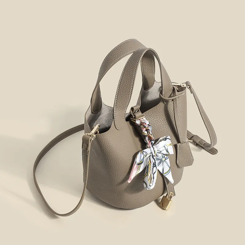 With its large capacity, this bucket bag is perfect for carrying your daily essentials while maintaining a slim profile. The bag is designed to provide enough room for your items without feeling heavy or cumbersome, making it a practical accessory for everyday use.