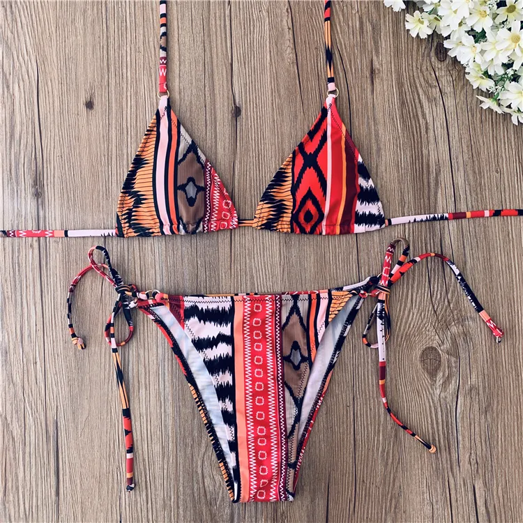 Fashion Printed Women's Backless Sexy Halter Bandage Strap Split Swimsuit Bikini Swimwear Two Piece Suits
