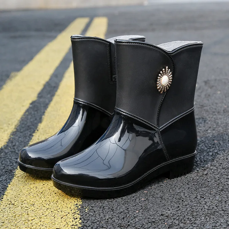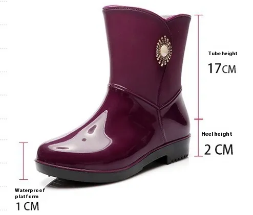 Fashion Rain Boots Women’s Middle Tube – Non-Slip, Warm, Waterproof Footwear