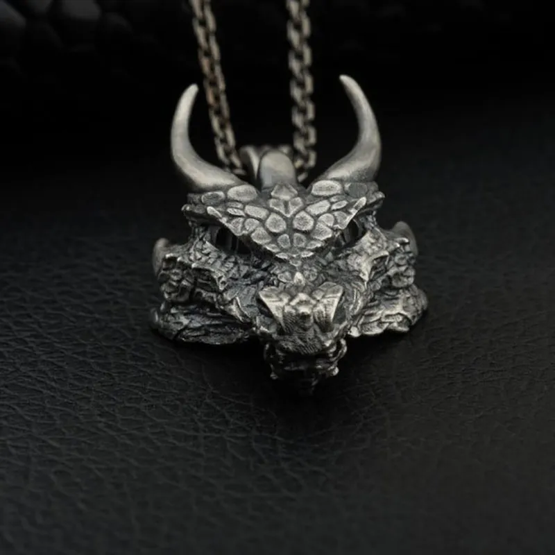 Fashion Retro Viking D-War Triangle Dragon Head Necklace